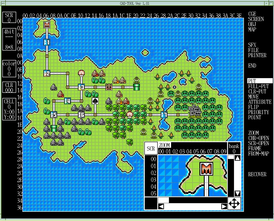 Editable map-side resource | Used in broader SNES art and source trees for room, area, or world layout data |