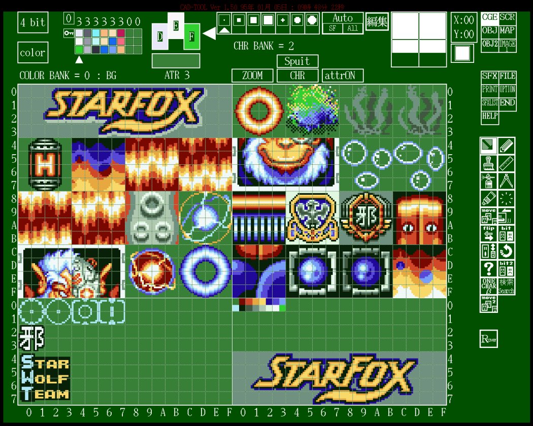 Character or tile graphics bank | One of the main Nintendo workstation graphics formats. In the art branches it holds text banks, menu graphics, object graphics, environment banks, and larger panel or HUD graphics |